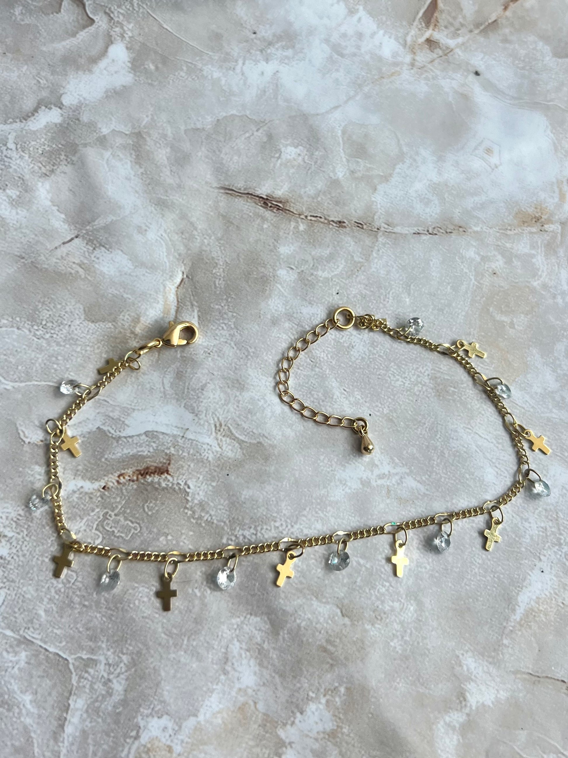 Cross & Crystal Anklet