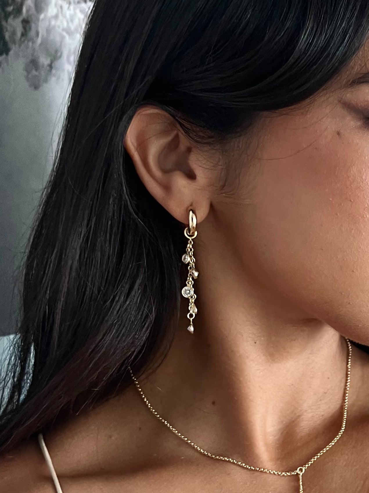 Dangle Zirconia Huggie Hoops