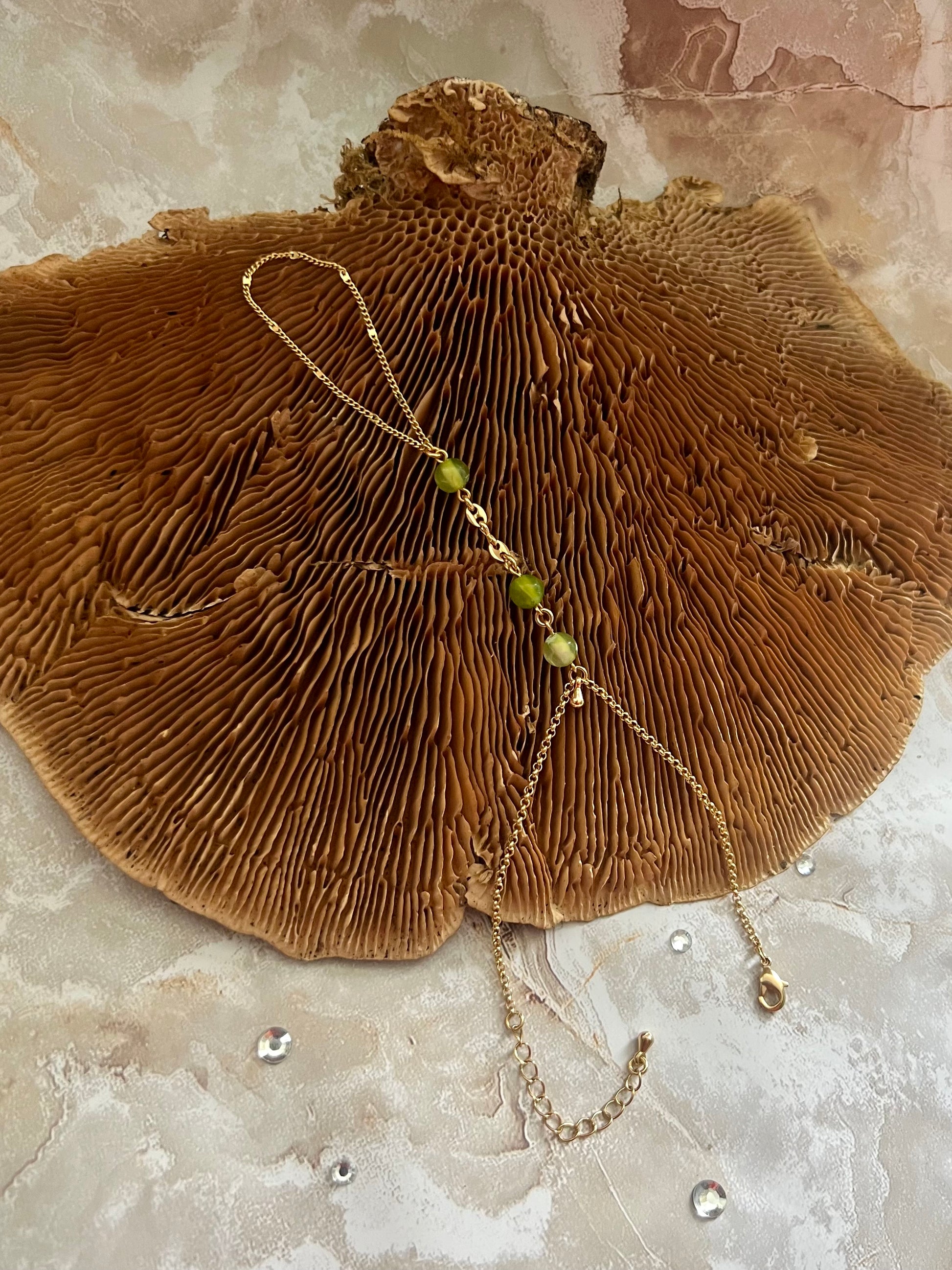 Esta pieza one of a kind hecha a mano está compuesta de Peridoto. El Peridoto se asocia con la energía positiva, la sanación y la protección. Se utiliza como amuleto de bienestar, dándole al portador una sensación de paz y renovación. Sirve para atraer la prosperidad, aumentar la claridad mental y fomentar el crecimiento espiritual.
